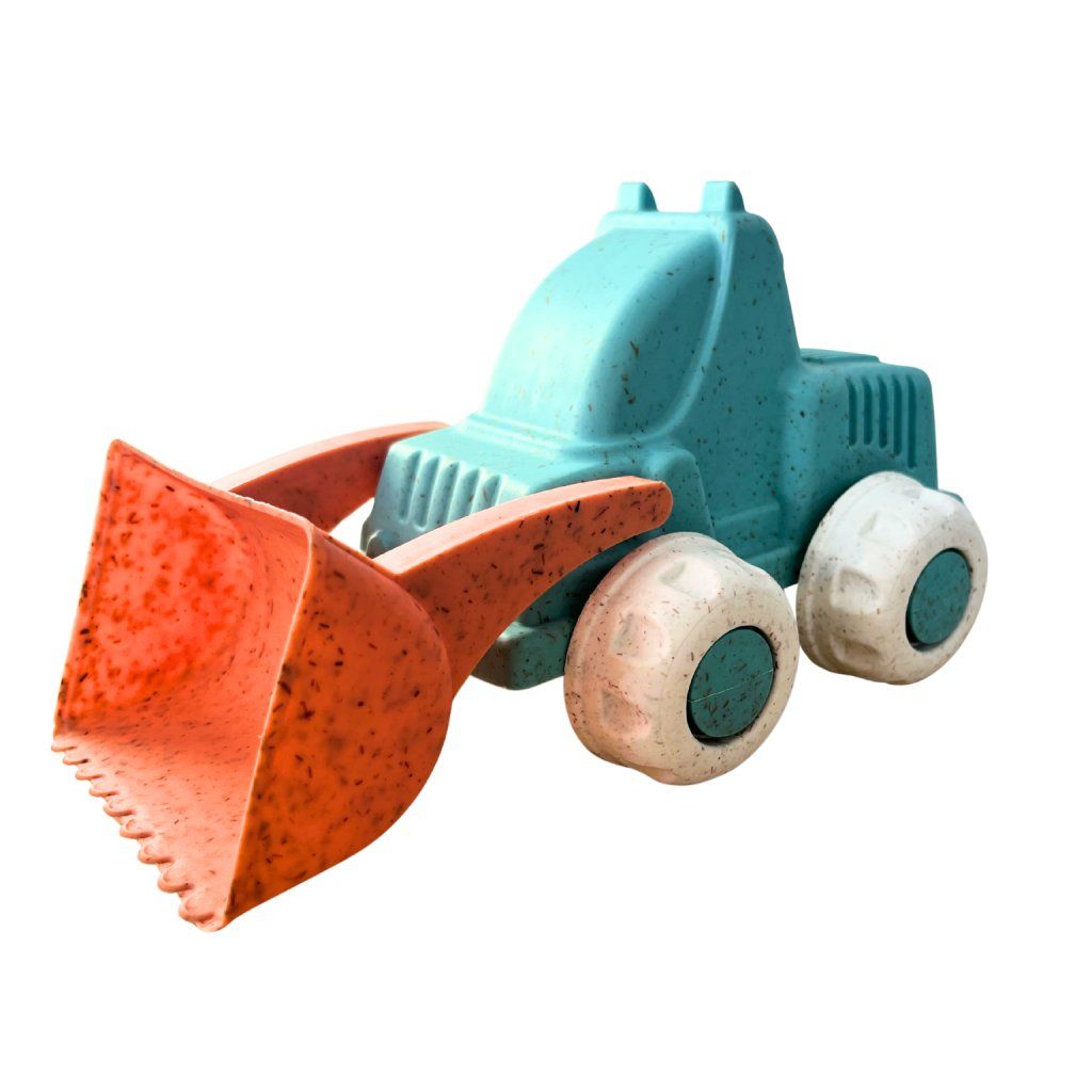 Tento roztomilý nakladač z bioplastu je skvělou hračkou pro malé děti, které milují auta, bagry a staveniště. Má jednoduché, bezpečné tvary, velká kola a funkční přední lopatu, kterou mohou děti nabírat písek, kostky nebo jiné drobnosti.