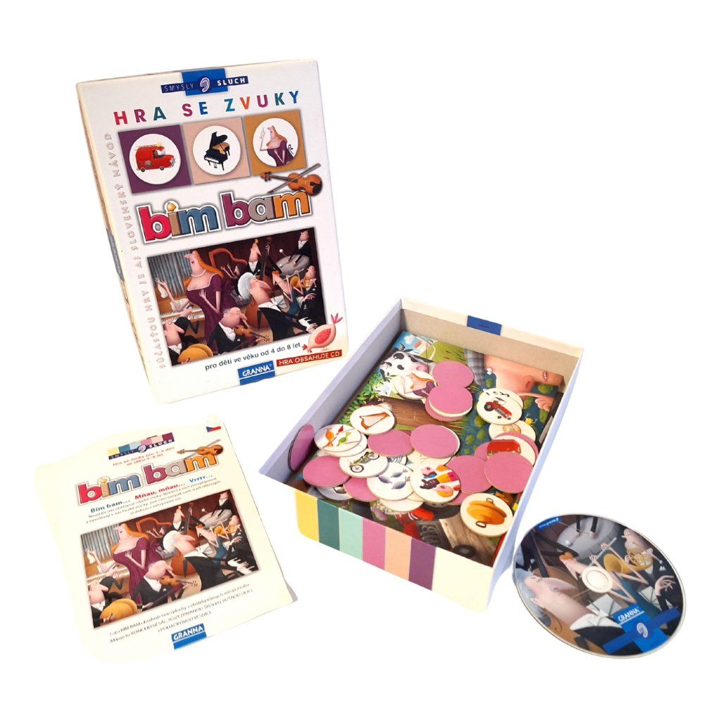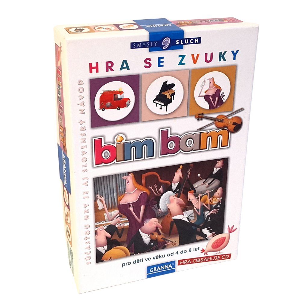 Bim Bam je zvuková hra, ve které děti poznávají zvuky nástrojů, strojů i zvířat. Součástí je CD se zvuky a obrázkové karty. Hra rozvíjí sluchové vnímání, pozornost a paměť. Vhodná pro děti od 4 let. Herní doba 15–20 minut, 2–4 hráči.