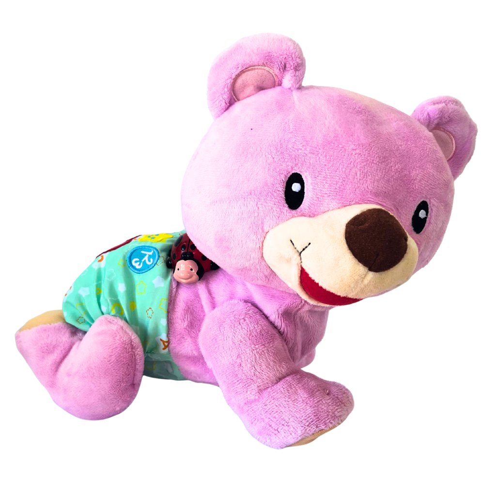 Medvídek je navržen tak, aby inspiroval děti ke stání na čtyřech a k lezení díky povzbuzujícím pokynům jako „Polez se mnou“. Manipulací s barevnými tlačítky se děti přirozeně učí poznávání tvarů a barev, čímž rozvíjejí své smyslové vnímání.