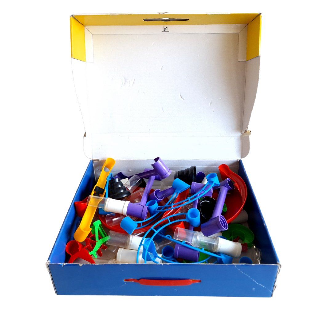 Italská kvalita od Quercetti. Set obsahuje trychtýře a rozdělovače, které kuličkám mění směr. STEM hračka, která učí základy gravitace a mechaniky.