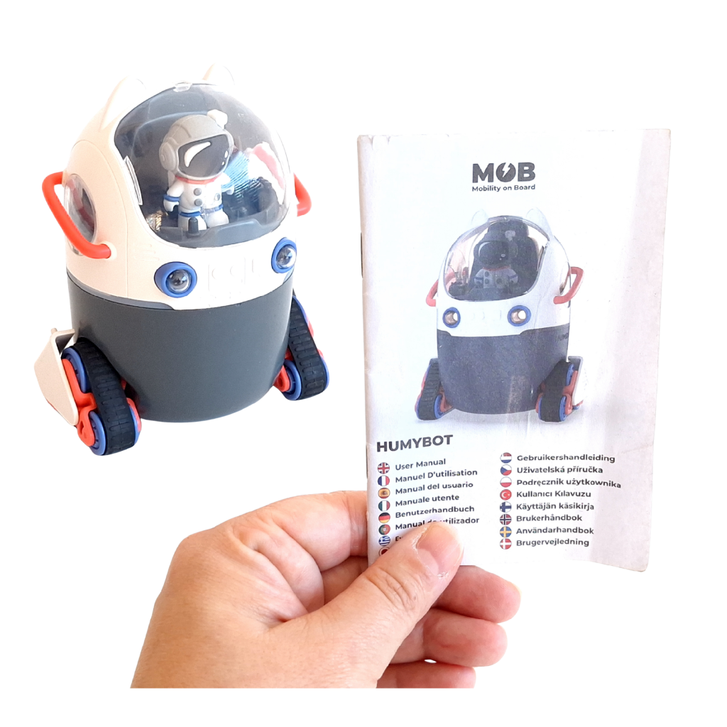 Zábavný Humybot ve tvaru vesmírné lodi – zvlhčovač vzduchu s nočním světlem a odnímatelným astronautem. Skvělý doplněk do dětského pokoje.
