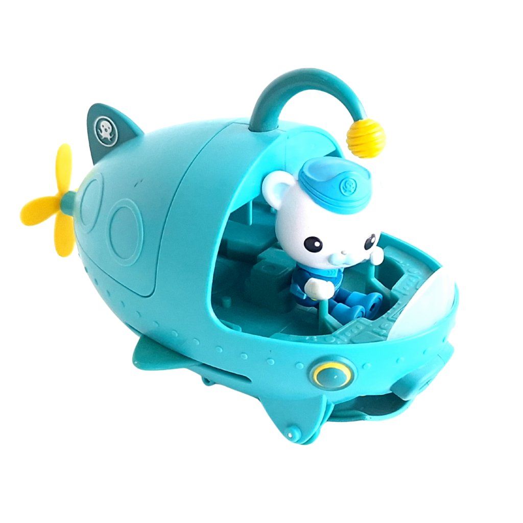 Kultovní ponorka Gup-A a figurka kapitána Barnaclese pro podmořské záchranné mise.