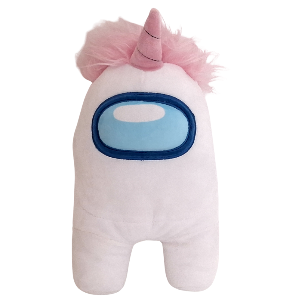 Měkký plyšák ve tvaru postavičky z Among Us v unikátní jednorožčí verzi. Ideální jako dárek pro fanoušky hry i sběratele roztomilých postaviček.