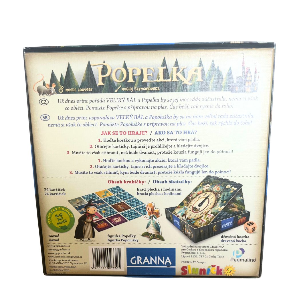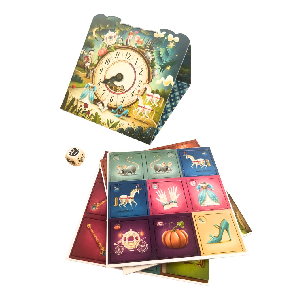 Cílem týmu je najít všechny dvojice karet s předměty (střevíčky, šaty, kočár), které Popelka potřebuje k odjezdu na ples. Ale pozor – musíte to stihnout dřív, než hodiny na hrací ploše odbijí dvanáctou! O tom, jakou akci provedete, rozhoduje speciální kostka.