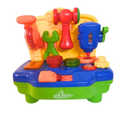 Dětská svítící a hrací dílnička, cca 30x30x20 cm. Hpdně používané - zohledněno v ceně.